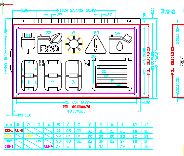 8, 驅動方式:1/4DUTY 1/3BAIS (按客戶所用IC和客戶要求確定)